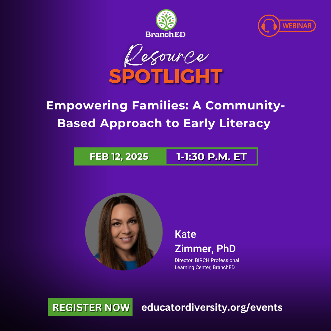 Offered in both English and Spanish, BranchED’s Dialogic Reading Toolkit is intended to help individuals recognize the value of a child’s ability, their family, and their community, while collectively working together to develop early literacy skills. During this spotlight viewers will learn how to use the toolkit to foster early literacy skill development in collaboration with community partners, teacher candidates and caregivers.