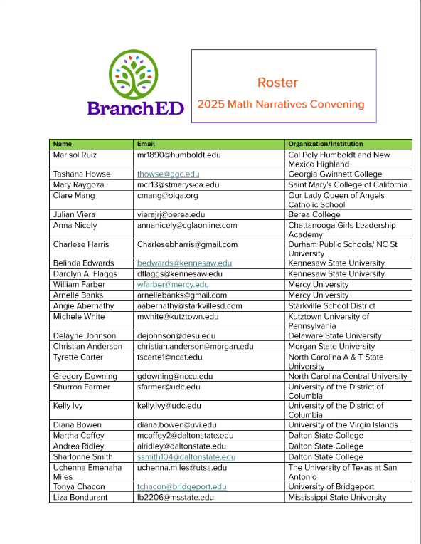 BranchED Math Narratives Convening